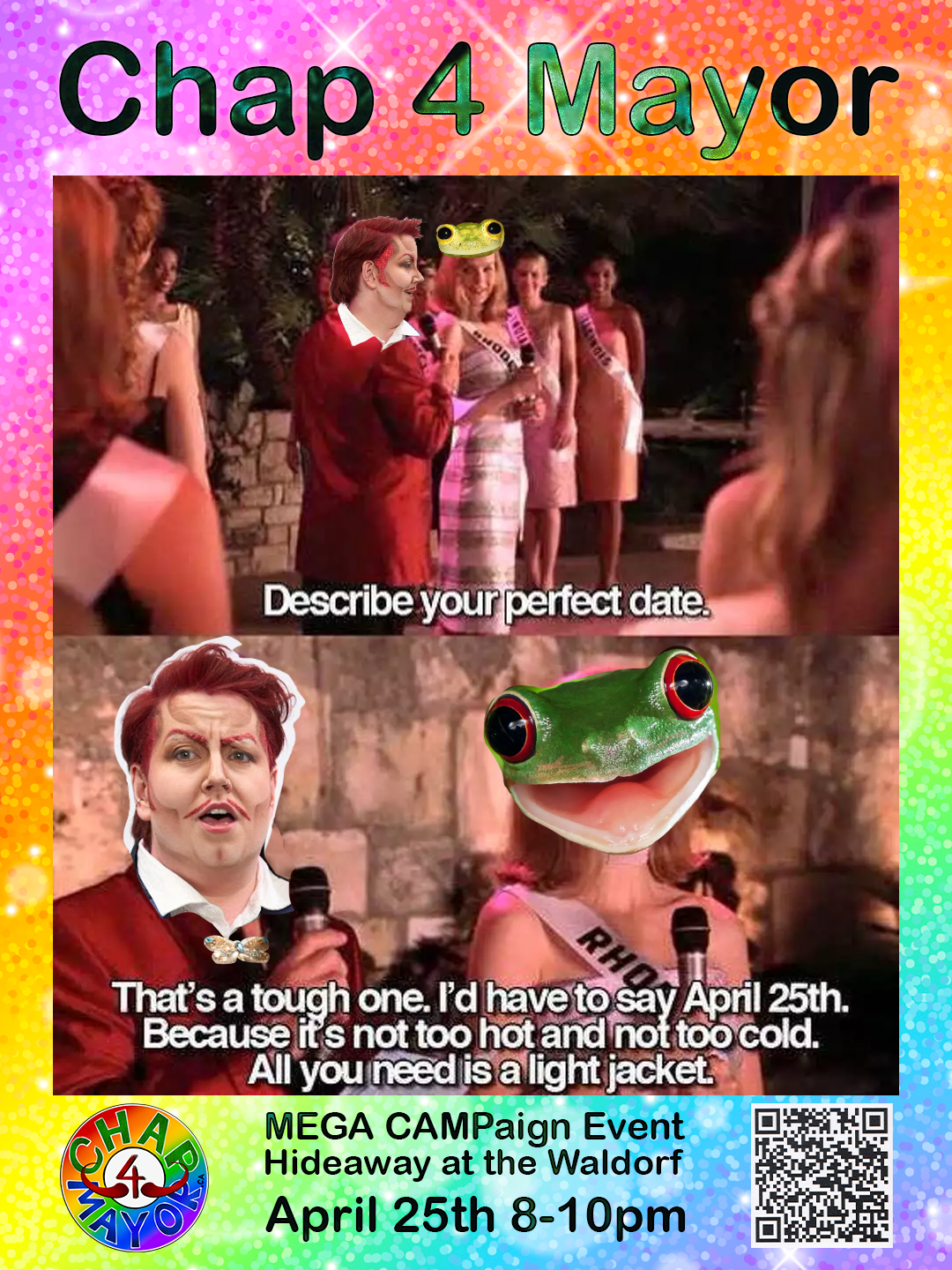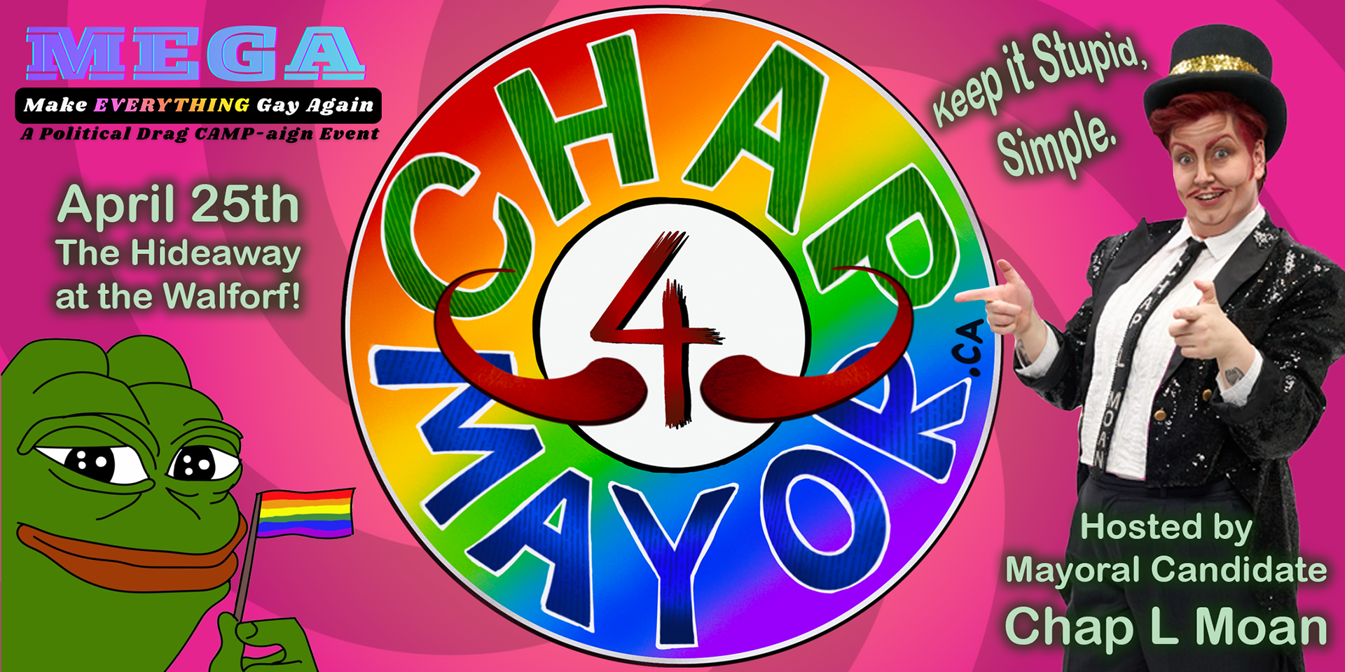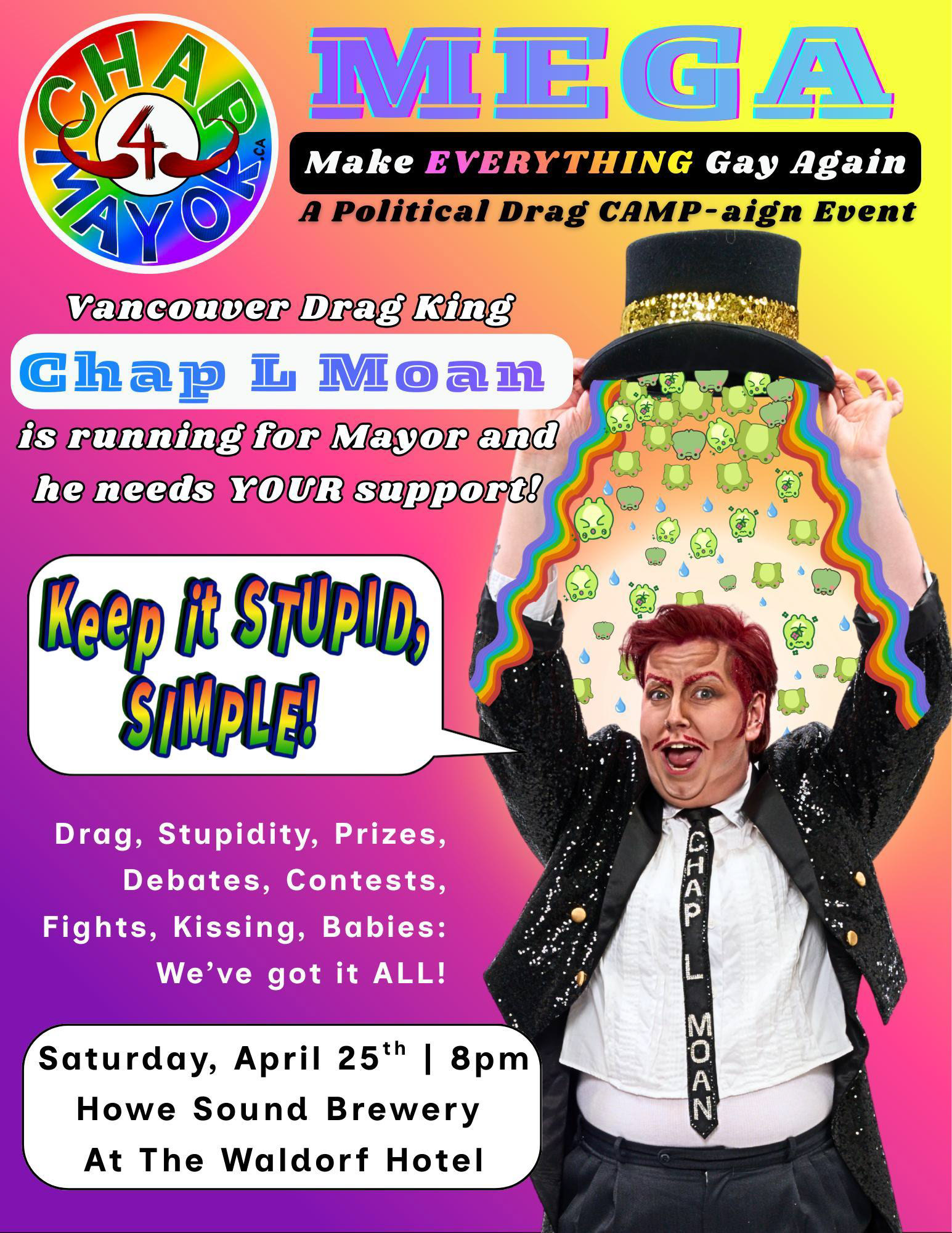 and me as Mr. Simp Elle run a legitimate mayoral campaign for a drag king. Chap is the mayoral candidate and Mr. Simp Elle is his loyal campaign manager.