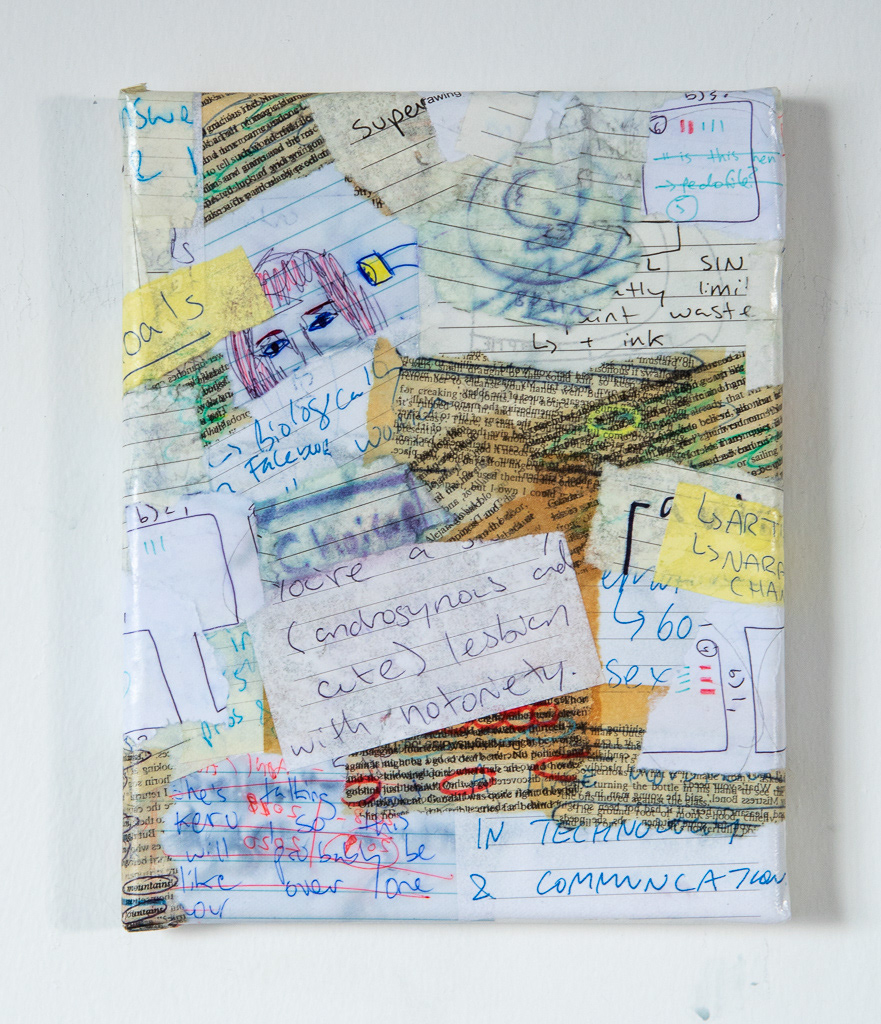 Book Pages, Journal Entries, and Doodles Glued onto Canvas